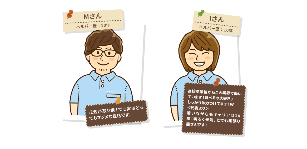 障害の種類や症状の程度によって必要とする介護は異なりますが、経験はもちろんのこと、常に利用者様の立場に立った行動と姿勢で最大限のサービスを提供させていただきます。