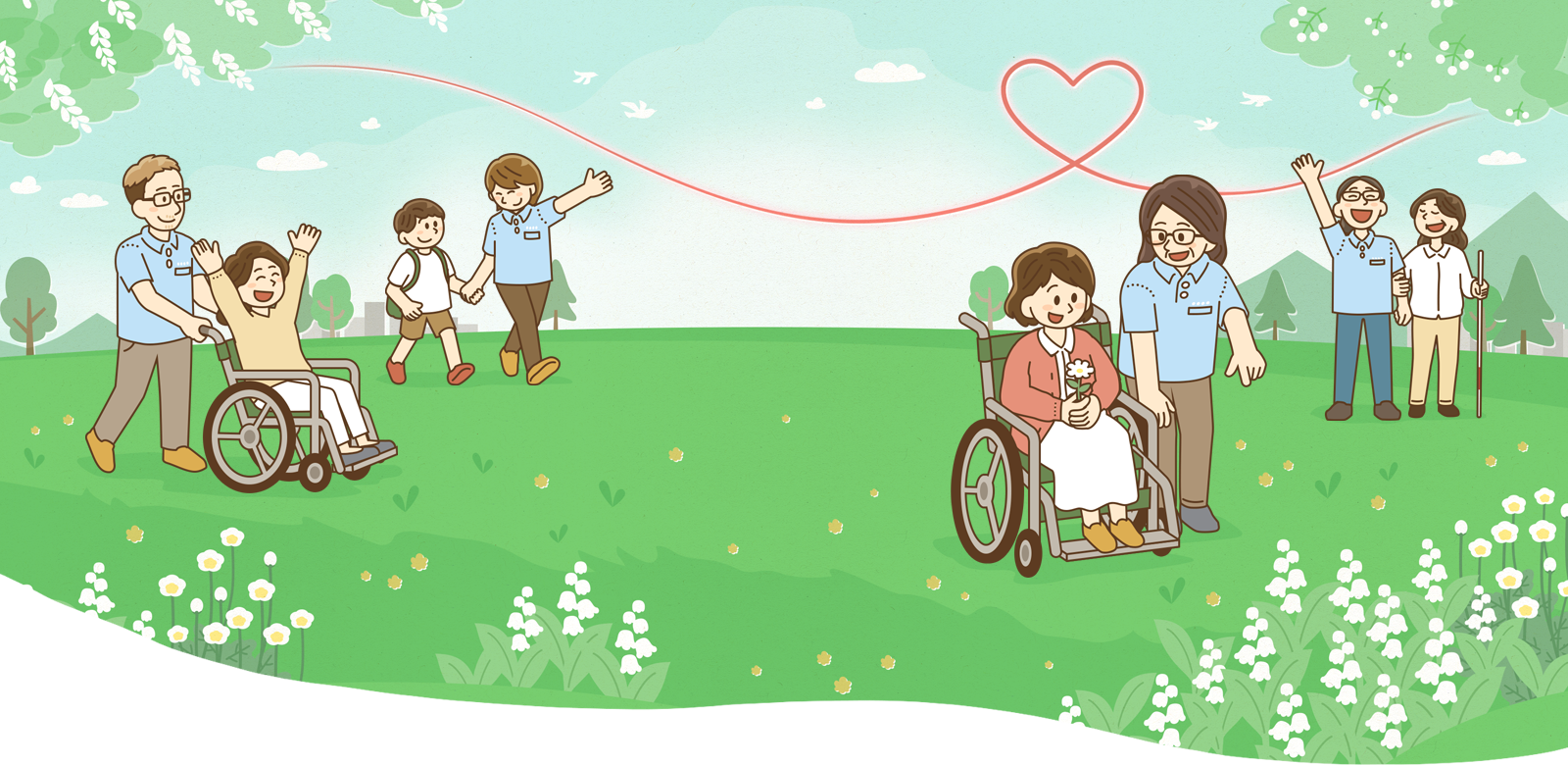 皆さまは「障害福祉サービス」というと、どのようなイメージをお持ちでしょうか? どうしてもネガティブなイメージを持たれる方も多くいらっしゃるかもしれませんが、私たちは“あなたと一緒に一歩ずつ”をコンセプトに、スタッフ全員が利用者はもちろんその家族の方々にまで誠意をもって寄り添い、理解を深めていけるよう、日々努めております。 そして、利用者様への手助けを最高水準でご提供したいという思いのもとに、携わるスタッフの技術や経験はもちろんのこと、給与面なども含めた業界水準の向上を目指しています。 介護される・介護を行う、関わる全ての方々の幸せが私たちの願いです。